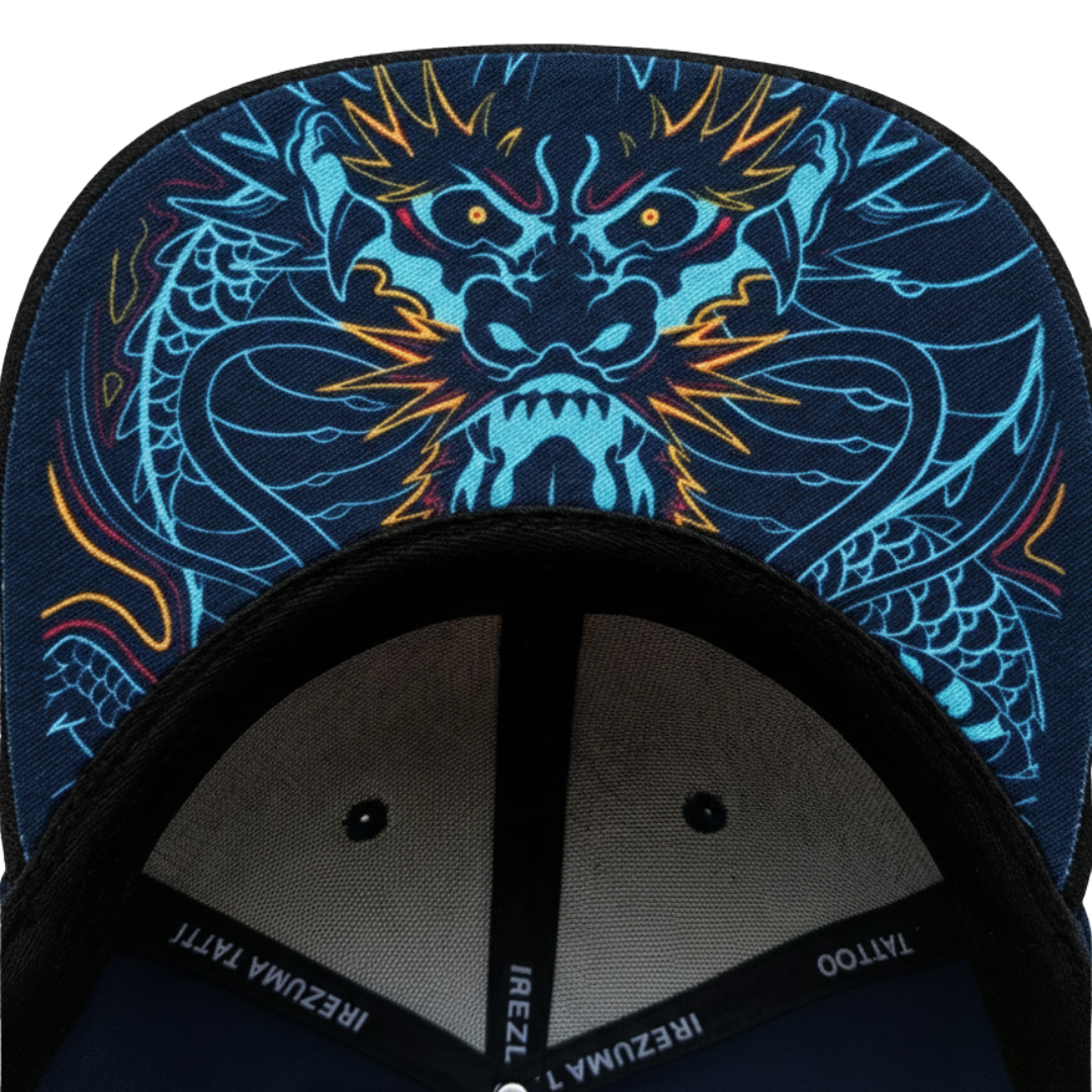 Mũ “Long Ảnh Trấn Mệnh” lấy họa tiết rồng Nhật cổ từ bộ áo Long Ảnh, thêu lại trên form mũ 6 panel bằng đường chỉ nổi sắc nét. Rồng tượng trưng cho trí tuệ và sự bảo hộ, biến chiếc mũ thành một phong ấn mang khí mệnh và cá tính của người đội.